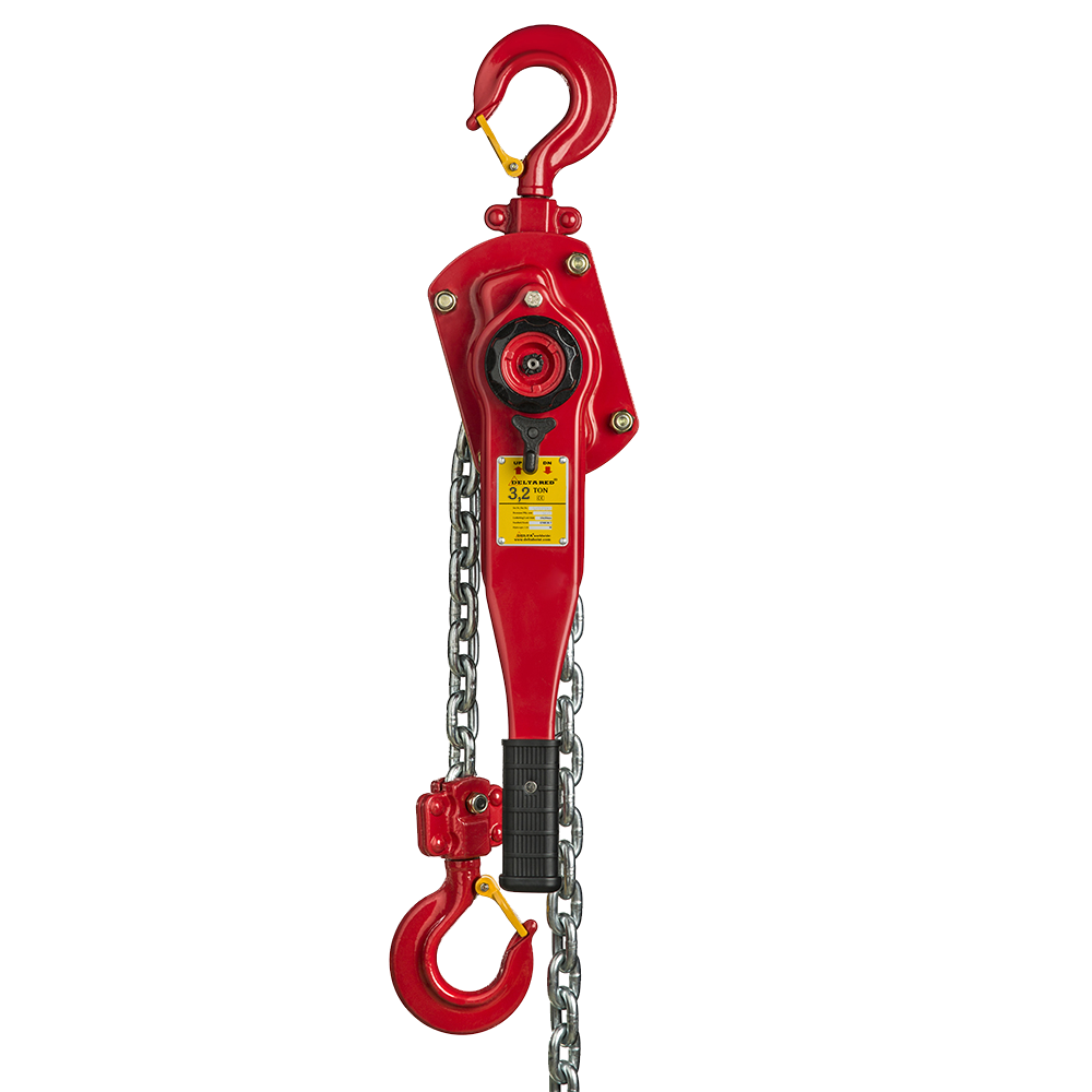 Ergonomic lever with rubber sleeve. Optimised load chain guidance system.